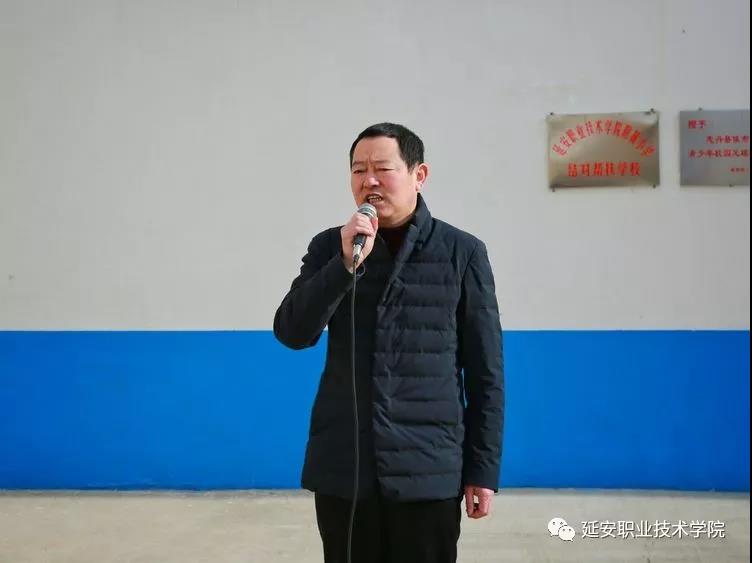 12月24日,延安职业技术学院党委委员副院长党云萍、党委委员人事处处长白国礼和附小校长韩来荣前往志丹县侯市小学,举行“结对帮扶”揭牌仪式并开展教学帮扶活动。学院扶贫办主任冯学起、志丹县教育局副书记苏红林、侯市便民服务中心书记杜方云、延安市委组织部下派干部郑广顺、学院派往该村第一书记吴小军等参加仪式。