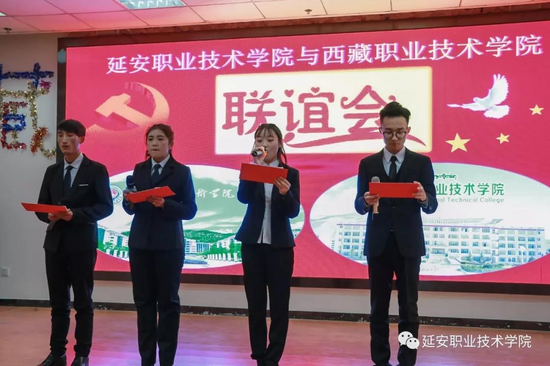 在联谊会中,我院各院(系)级社团纷纷精彩演出,展示各个社团特点。信天游俱乐部的安塞腰鼓、陕北民歌独唱等节目充分展现了延安独特的黄土高原风情。西藏职业技术学院的同学也为此次联谊会献上了具有藏族民族特色的节目。在联谊会的高潮,西藏职业技术学院的同学们为此次出席联谊会的我方老师们献上了珍贵的礼物—哈达。我校书法协会以书法“延安精神”作为礼物,回赠西藏职业技术学院。联谊会现场轻松愉快、高潮迭起、气氛热烈。