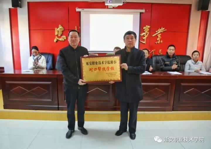 11月30日,延安职业技术学院扶贫办主任冯学起、附小校长韩来荣前往延川县永坪镇,在延川红军小学与三所小学校长签订“结对帮扶”协议。延川县教育局工会主席冯光玉主持仪式。