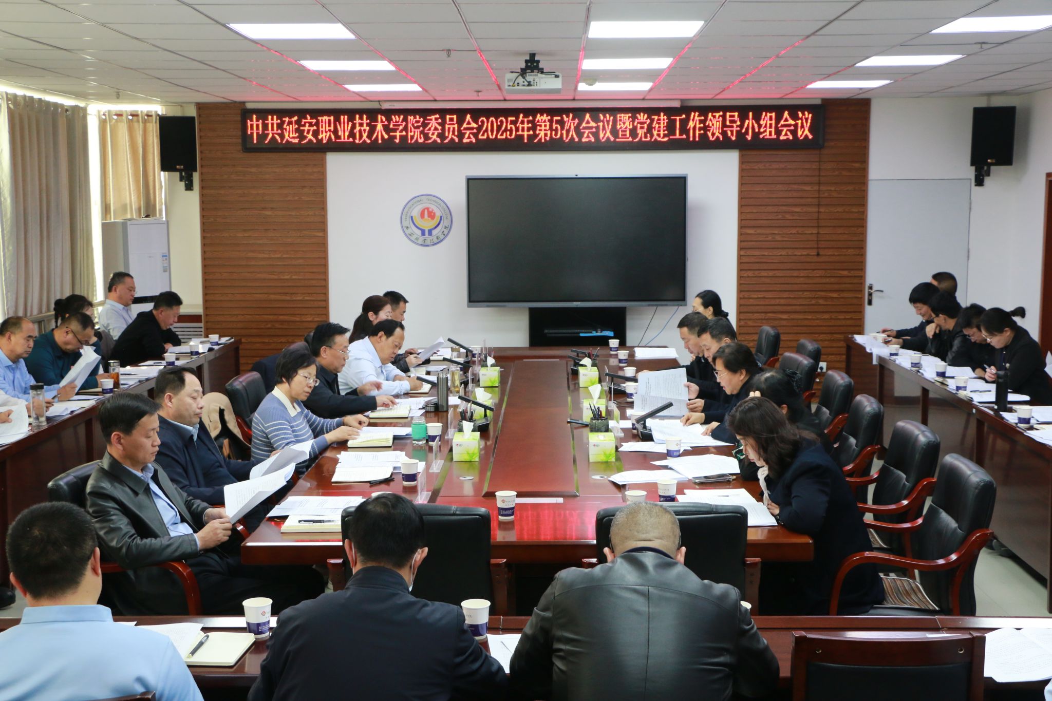 3月24日,中共延安职业技术学院委员会召开2025年第5次会议暨党的建设工作领导小组会议,认真学习习近平总书记关于深入贯彻中央八项规定精神学习教育的重要讲话和重要指示精神,传达学习中共中央办公厅《关于在全党开展深入贯彻中央八项规定精神学习教育的通知》《十八届中央政治局关于改进工作作风、密切联系群众的八项规定》等文件精神,审议《中共延安职业技术学院委员会开展深入贯彻中央八项规定精神学习教育实施方案》等议题,研究部署学院开展深入贯彻中央八项规定精神学习教育工作,学院党委书记冯奇海主持会议并讲话。