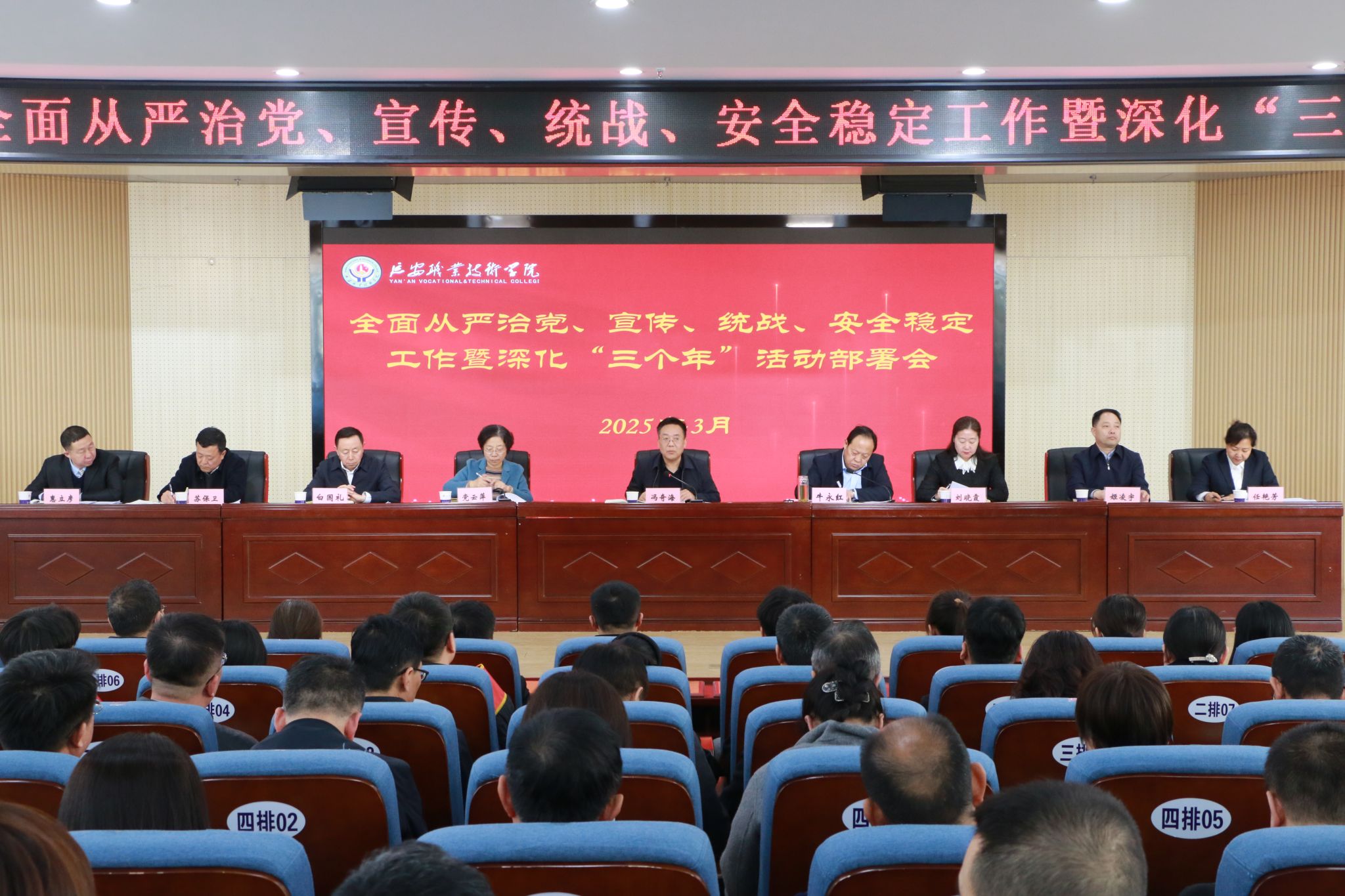 3月20日下午,延安职业技术学院召开2025年全面从严治党、宣传、统战、安全稳定工作会暨深化“三个年”活动安排部署会。会议以习近平新时代中国特色社会主义思想为指导,深入贯彻落实中省市有关决策部署,筑牢“五大基石”,全面落实立德树人根本任务,扎实推进“双高计划”建设,为学院高质量发展增新光添浓彩。党委书记冯奇海出席会议并讲话,党委副书记、院长牛永红主持。